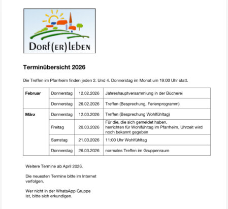 Termine 2026 - Dorf(er)leben e.V. Brunnthal